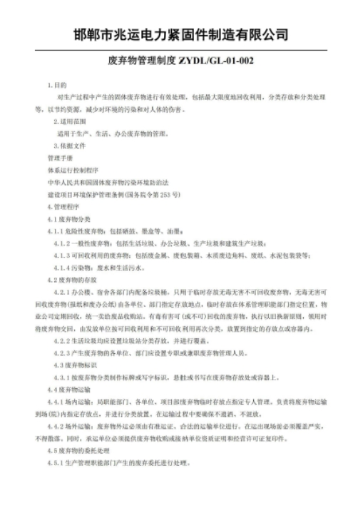 邯郸市兆运电力紧固件制造有限公司-绿色回收评价报告