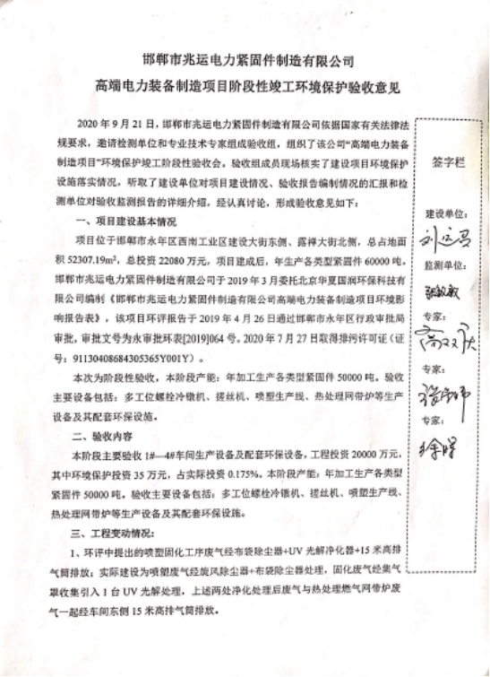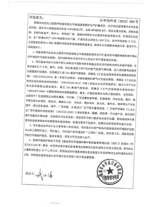 (2)高强度紧固件生产扩建项目
